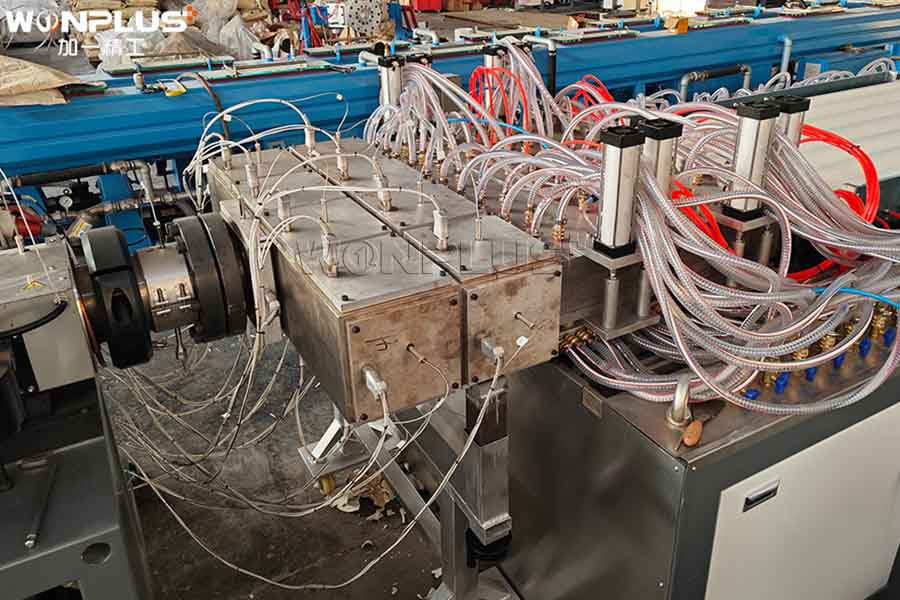 Huruf P Lini produksi atap VC dilengkapi dengan ekstruder sekrup ganda kerucut SJZ-80/156, beserta sebuah Cetakan atap berongga PVC , meja kalibrasi vakum, unit penarik, dan pemotong. Selama uji coba, lini produksi mempertahankan output yang konsisten, dan profil atap berongga yang dihasilkan menunjukkan stabilitas dimensi yang sangat baik dan kualitas permukaan yang seragam.
